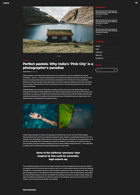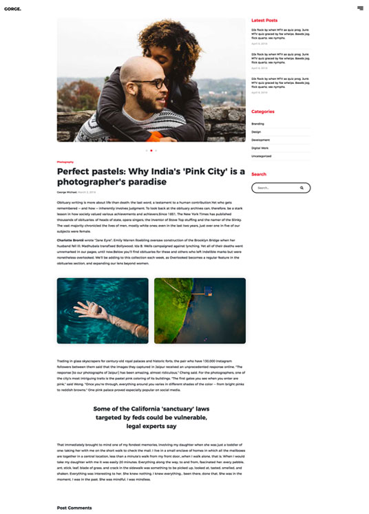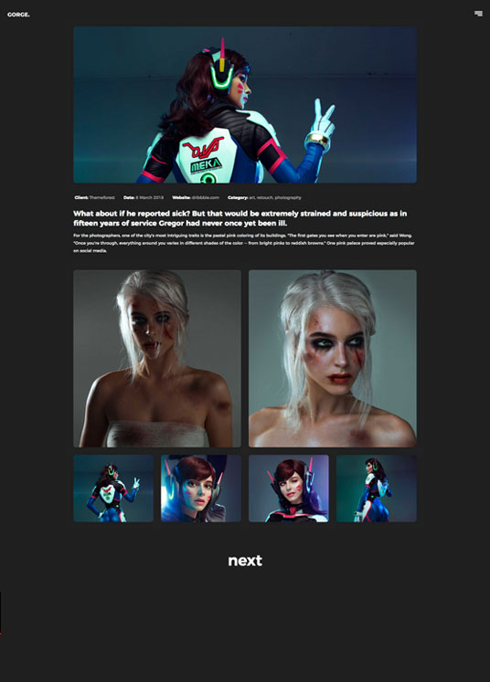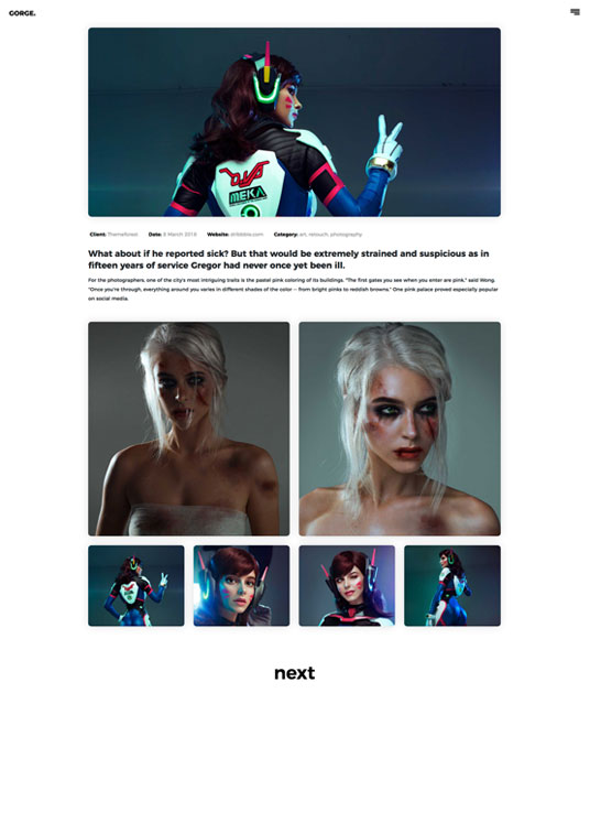 Minimalistic and clean design is main reason that Gorge Portfolio is great for everyone that are looking for small theme with features that are important.You can use this portfolio theme for